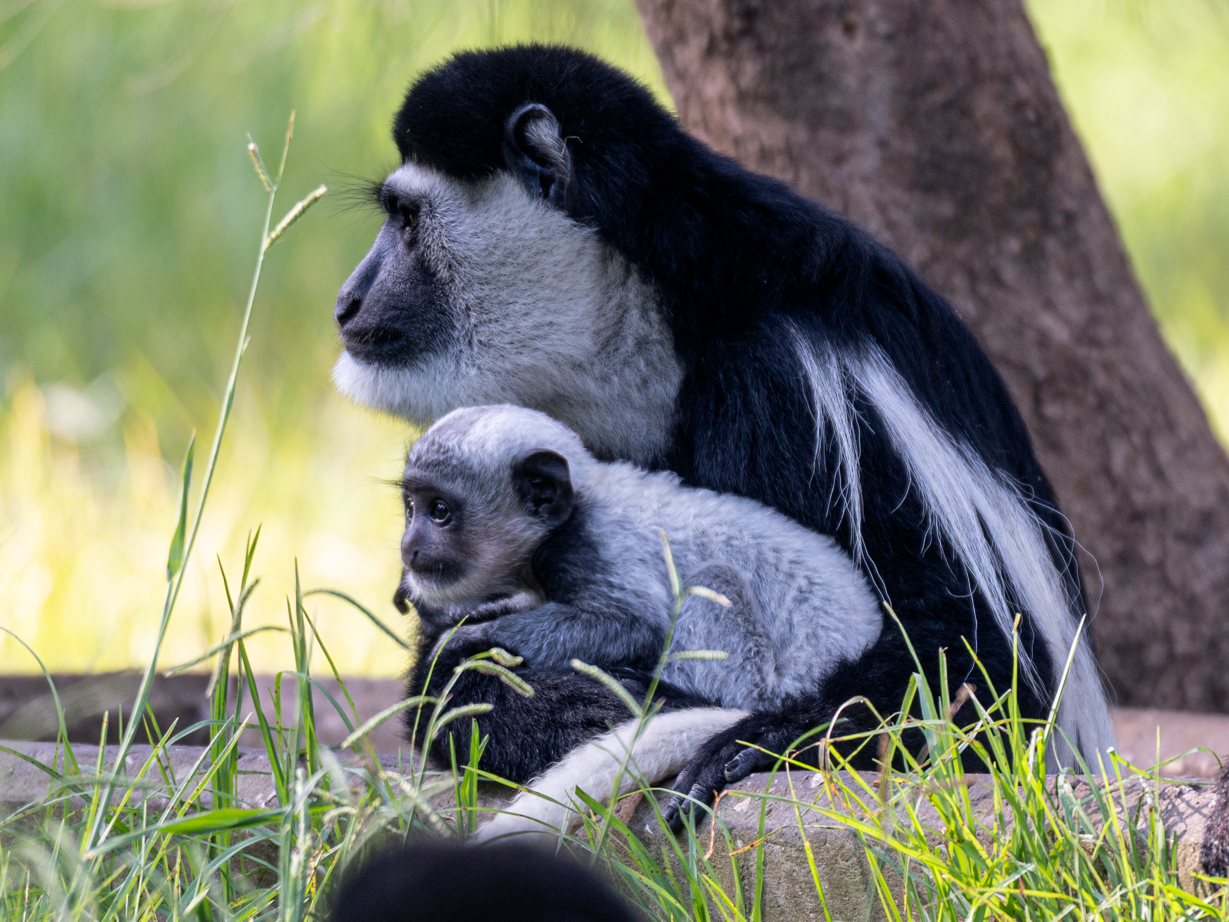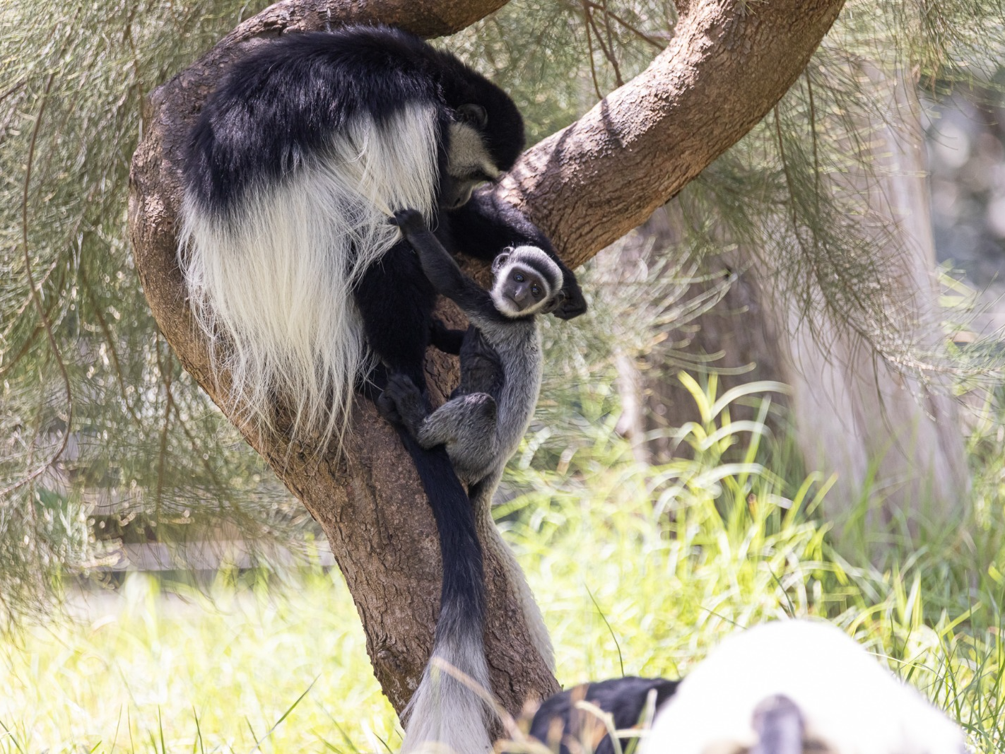 התרגשות גדולה מאוד בחצר הקולובוסים בחודש מאי נולדה גורת קולובוסים מתוקה ולבנה לגמרי!